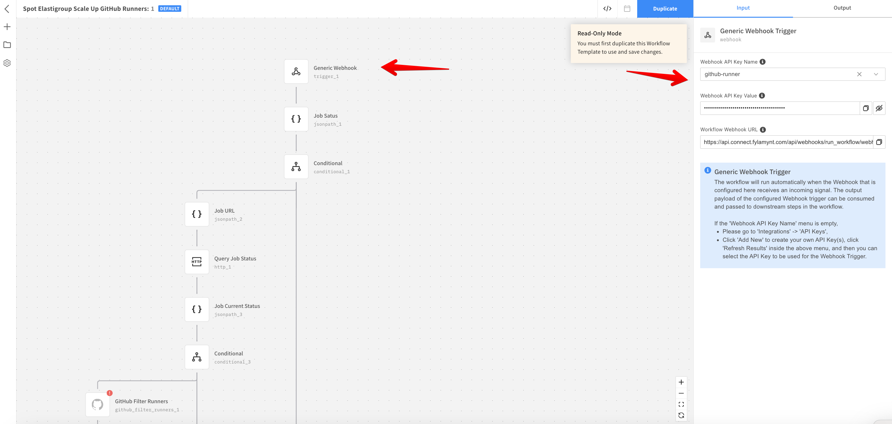 Create an API Key in Spot Connect that GitHub Webhook uses to trigger the scale up Spot Connect workflow.