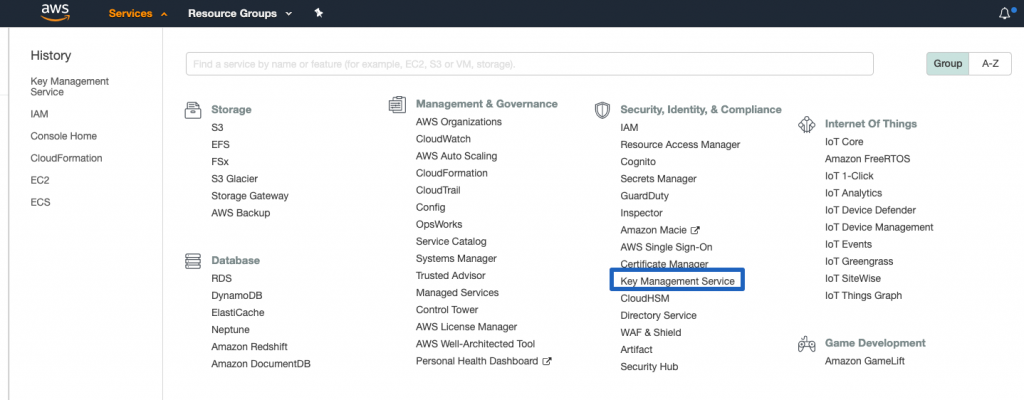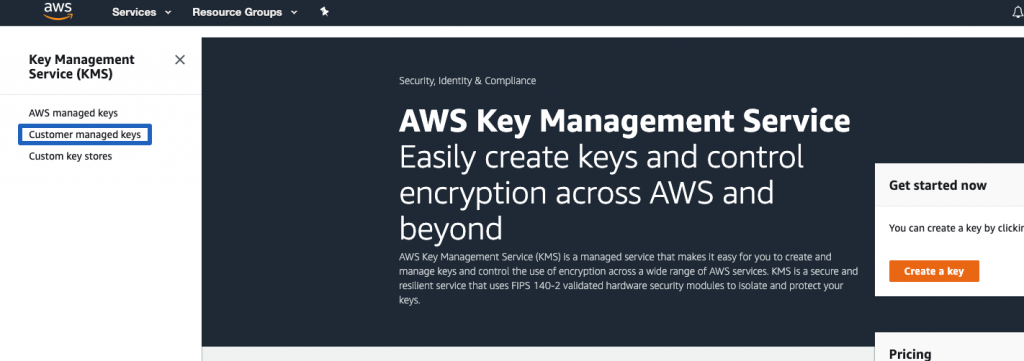 Sign in to your AWS console and navigate to the Key Management Service (KMS) console.