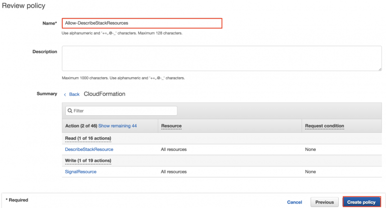 Click review, give the policy a name and create the policy: